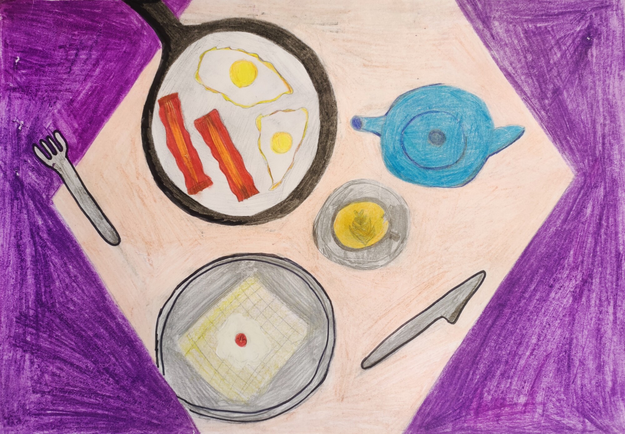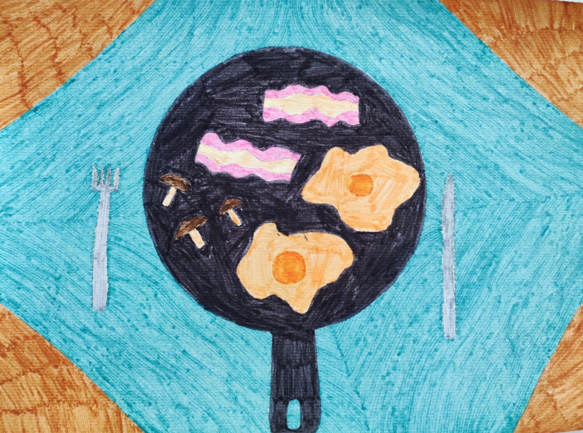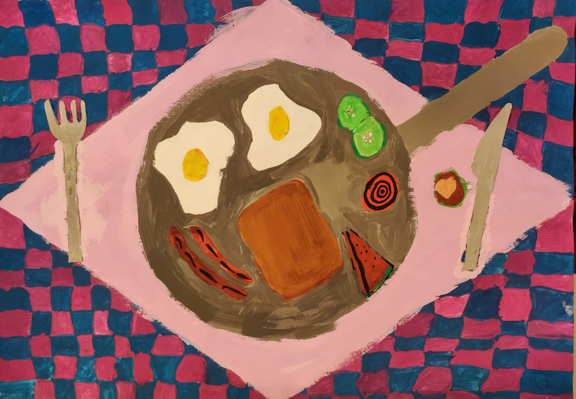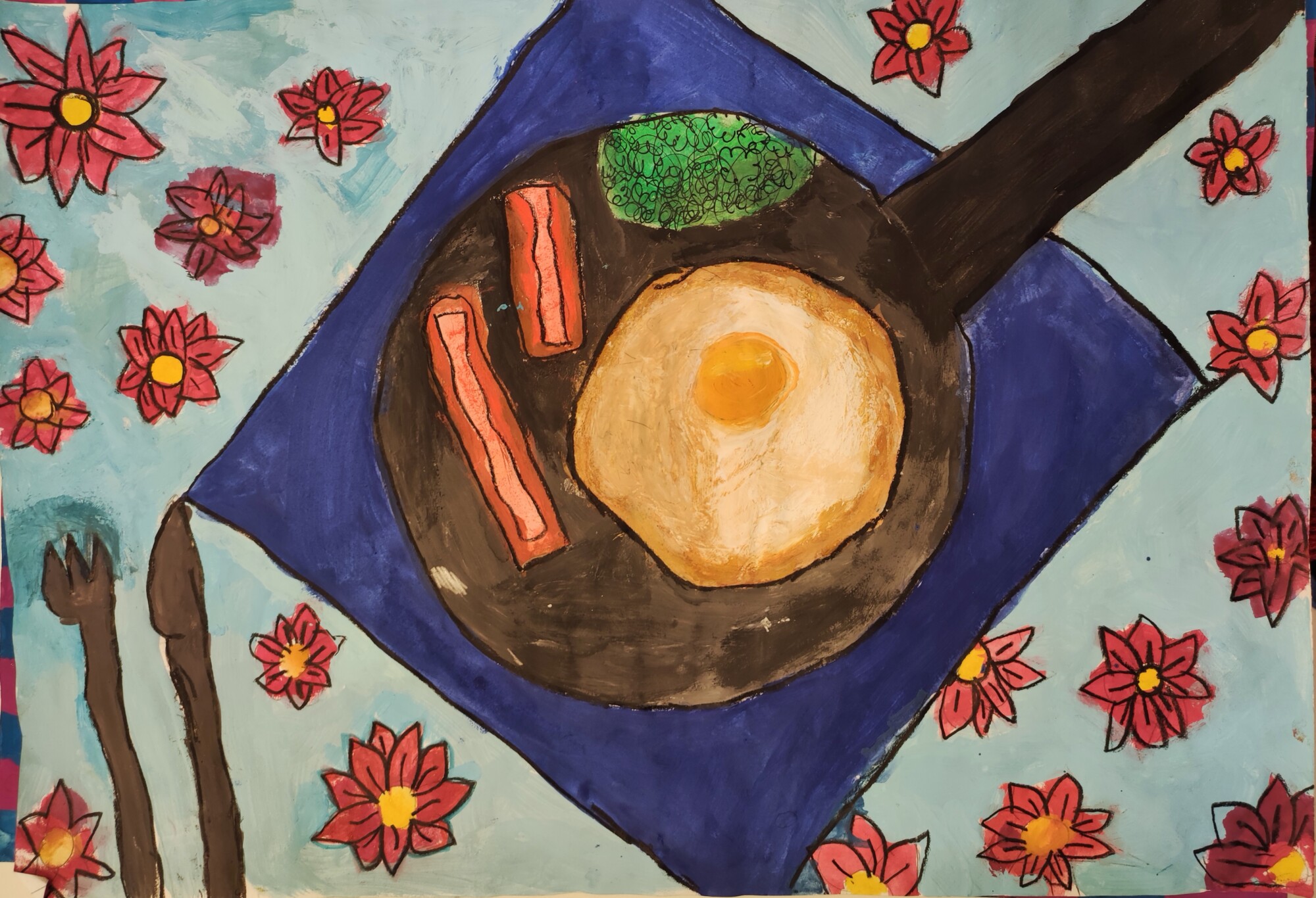 Während in der 1a Klasse mit Wasserfarben und Buntstiften gearbeitet wurde, kreierten die Künstler und Künstlerinnen der 1b ihre Mahlzeiten mit der Schere. Ob gemalt oder als Collage – beides sieht richtig lecker aus!