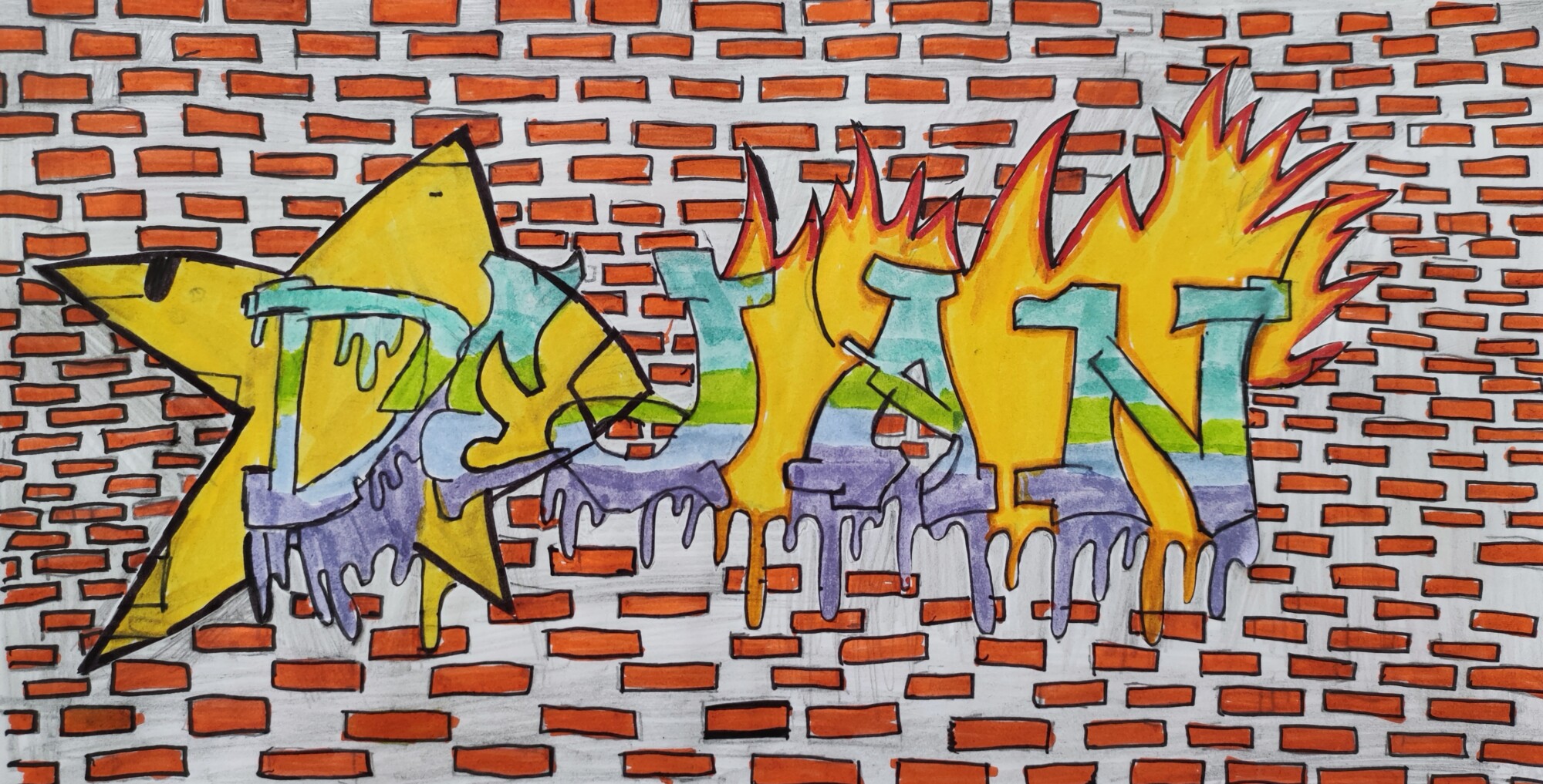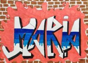 Hut ab! Hier haben sich unsere DrittklässlerInnen wirklich selbst übertroffen. Nach dem Betrachten einiger Graffiti-Kunstwerke legten die SchülerInnen selber los und entwarfen ihr eigenes Namens-Graffiti. Für diese konnten die SchülerInnen Farb- oder Filzstifte verwenden. Zum Schluss wurde noch ein cooles Hintergrund-Design entworfen.