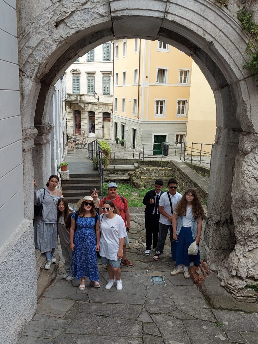 Und so kamen die Schülerinnen und Schüler und ihre zwei Lehrerinnen, Frau Gaioni und Frau Fröhlich, trotz schwerem Gepäck und vagen Umsteigezeiten am Mittwoch, den 22.05., mit dem Zug an. Zwischen den Verlockungen von gelato (Eis), Strand und Meer, bezauberte uns auch die wunderschöne Altstadt und deren Geschichte, die uns Frau Gaioni bei einer Stadtführung näherbrachte, sowie die Van-Gogh-Ausstellung im Museo Rivoltella Trieste.
